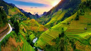Beautiful Rice terraces at viewpoint in Mu cang chai, Vietnam.